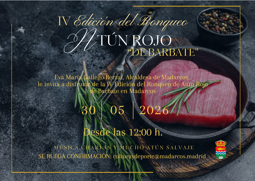 Madarcos celebra, el sábado 30 de mayo, la IV Edición del Ronqueo de Atún Rojo “de Barbate”, a partir de las 12:00 horas. Una experiencia gastronómica única en torno al atún rojo, con demostración de ronqueo, además de música, charlas y degustación de atún salvaje.